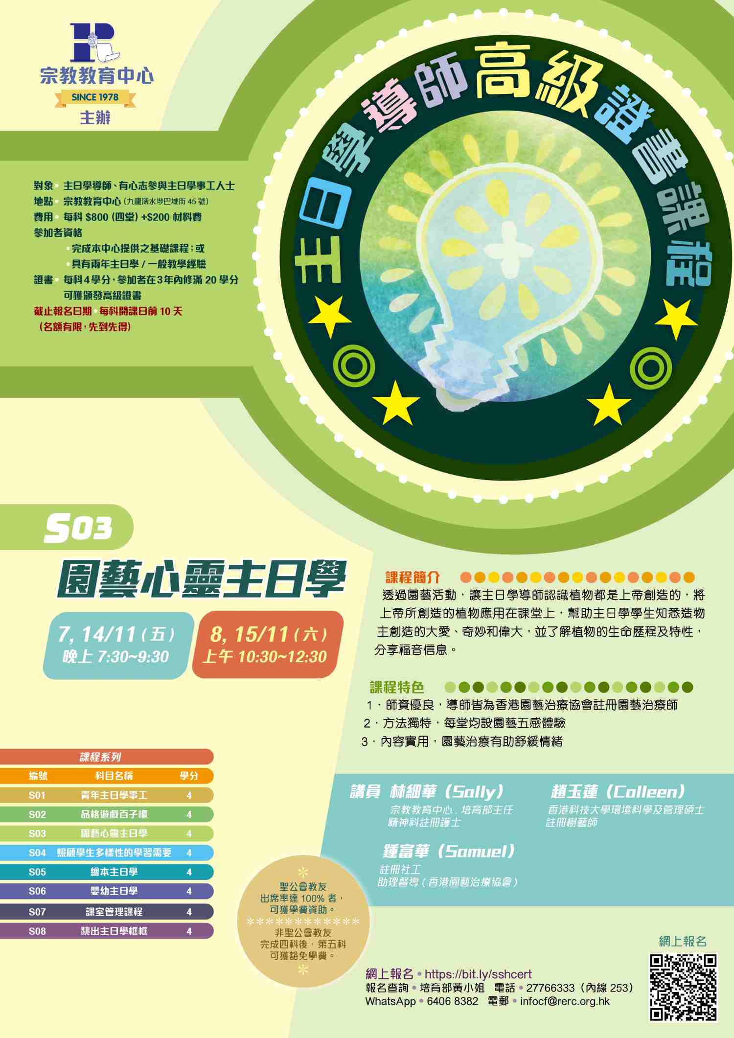 S03 | 園藝心靈主日學 | 4 | S07 | 課室管理課程 | 4 |